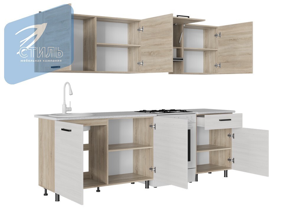 Готовая кухня «Глория 2,4» дуб сонома св., ясень анкор/дуб сонома св