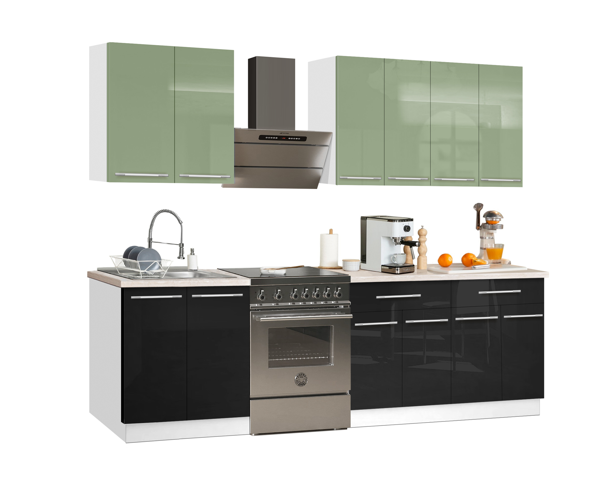 Готовая кухня «Марта 2.0» зеленый глянец/черный глянец