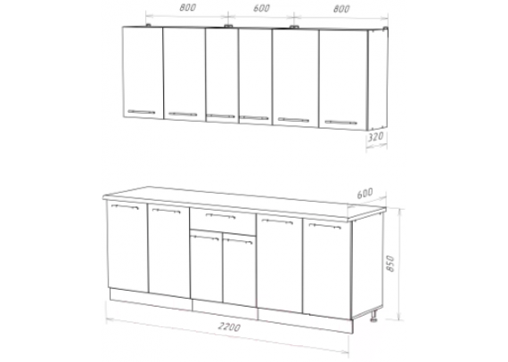 Готовый небольшой гарнитур с одноцветными фасадами.