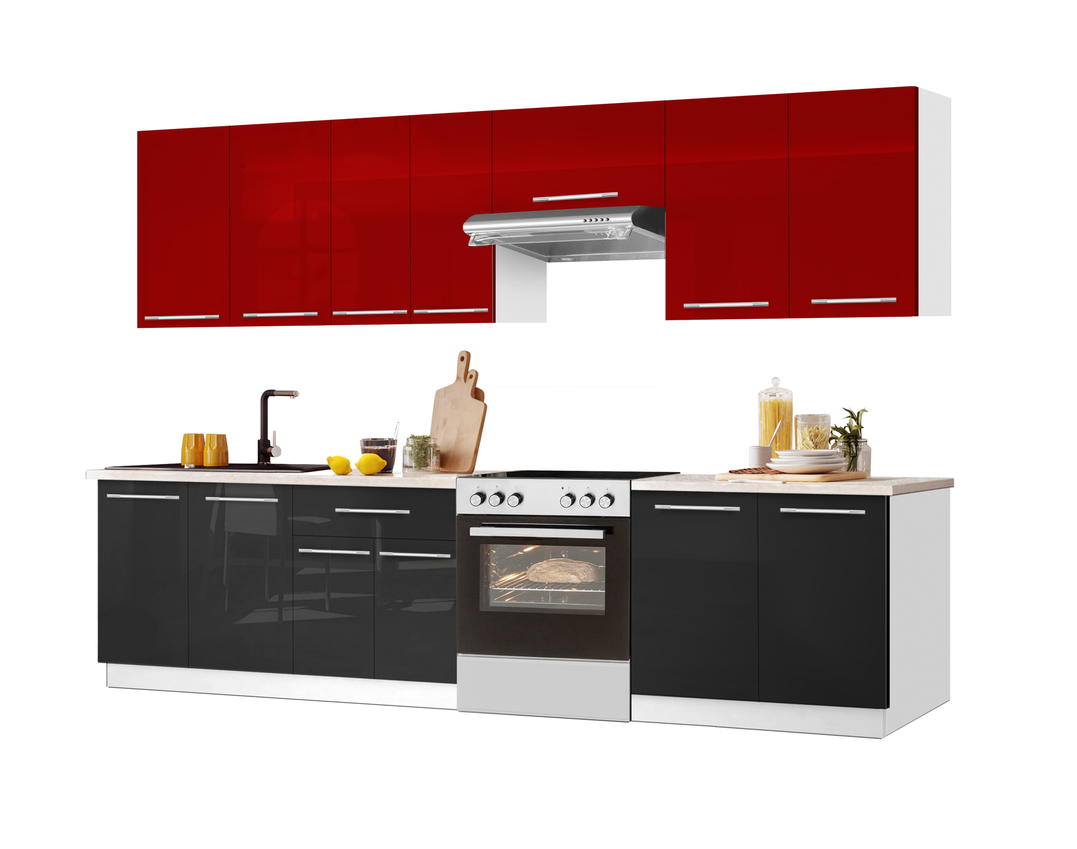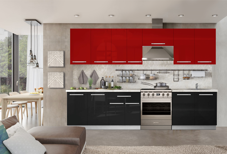 Готовая кухня «Марта 2.8» красный китайский глянец/черный глянец