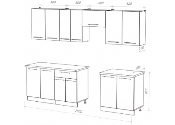 Материал фасада и корпуса: ЛДСП 16 мм. Ширина кухни 230 см.