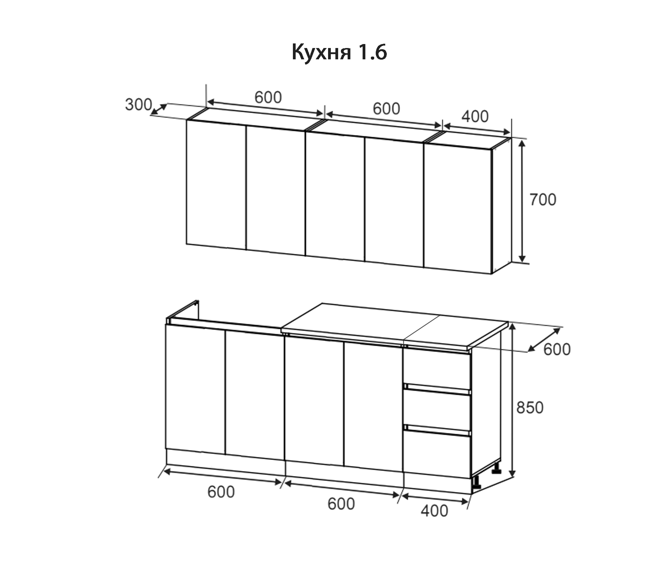 Длина кухни: 1.6/3: 60- мойка +60+40- шуфлядки
