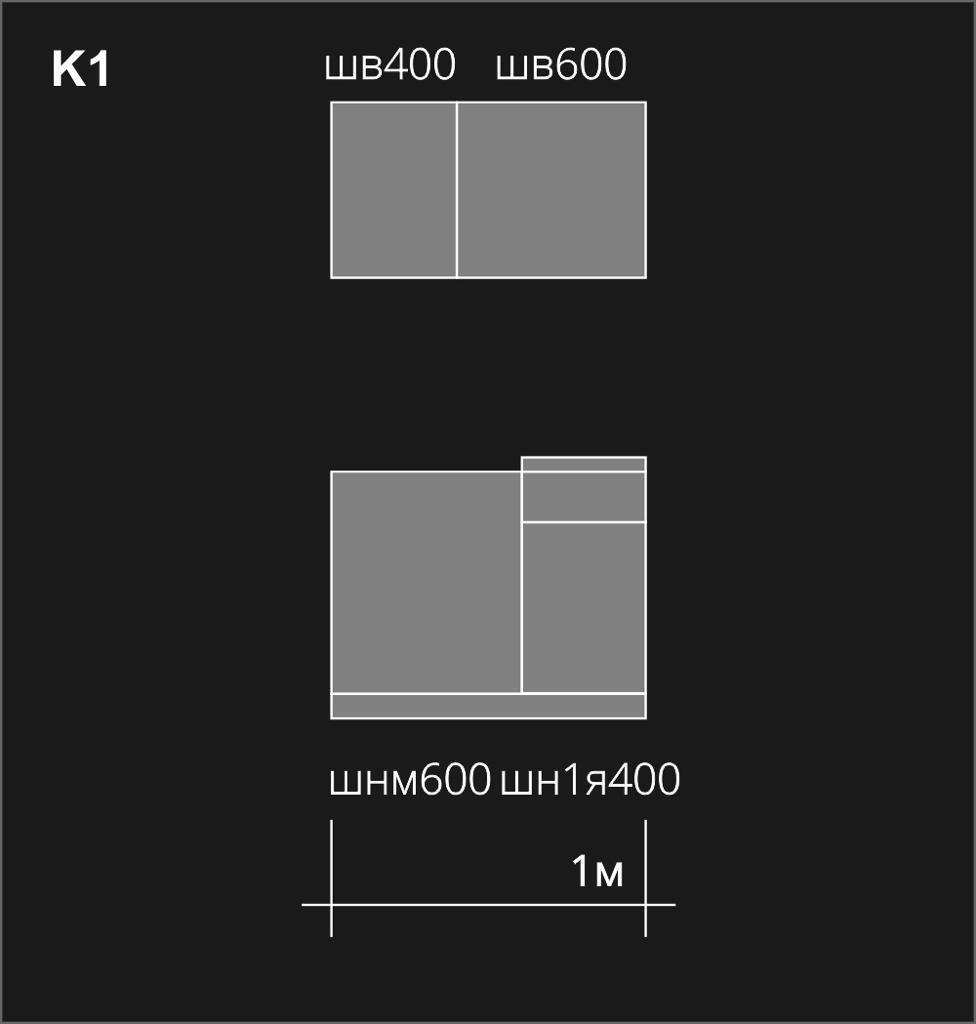 Материал фасада и корпуса: ЛДСП 16 мм. Ширина кухни 100 см.
