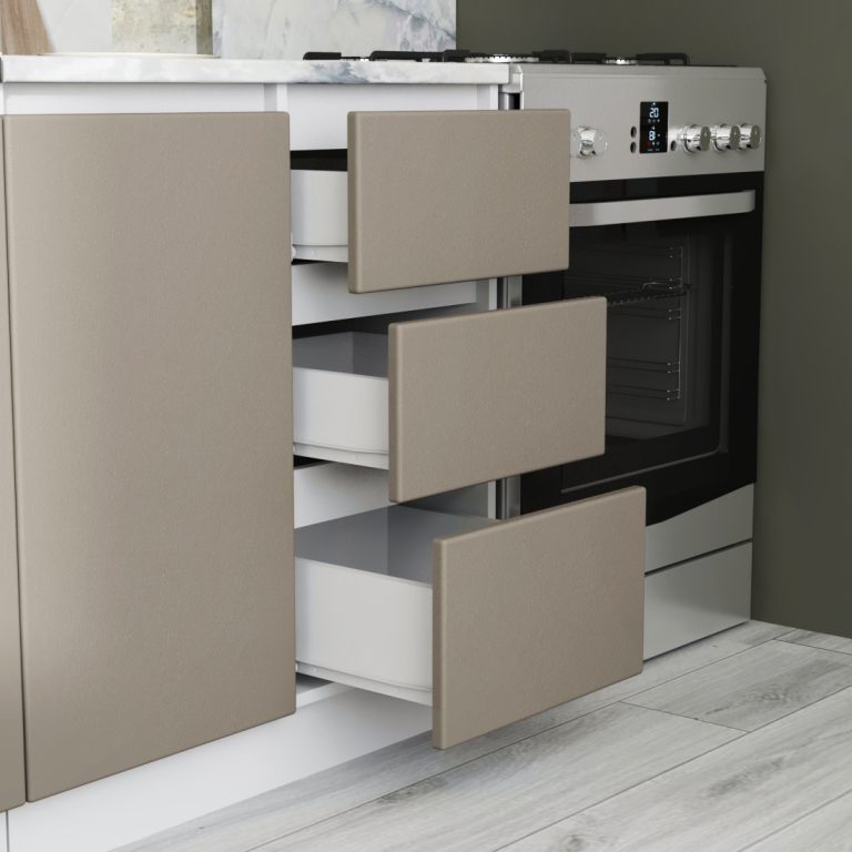 Фурнитура: петли без доводчиков, роликовые направляющие.