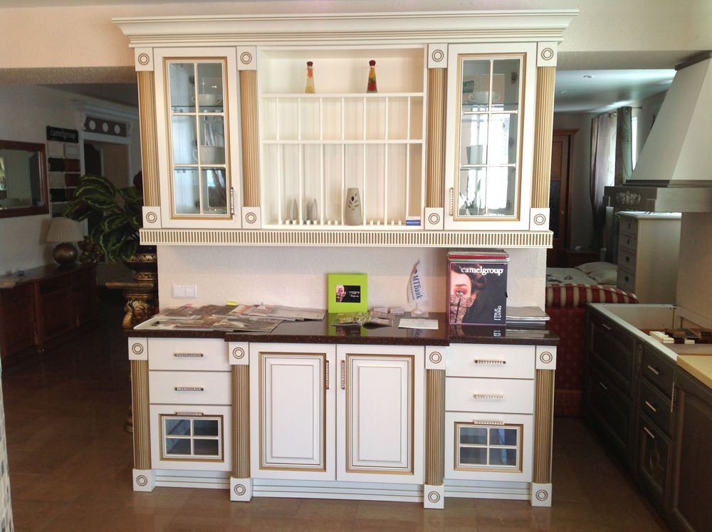 Итальянская кухня премиум-класса «МонтеКарло» от фабрики Хоум Кучине. Открытый ящик для хранения посуды.