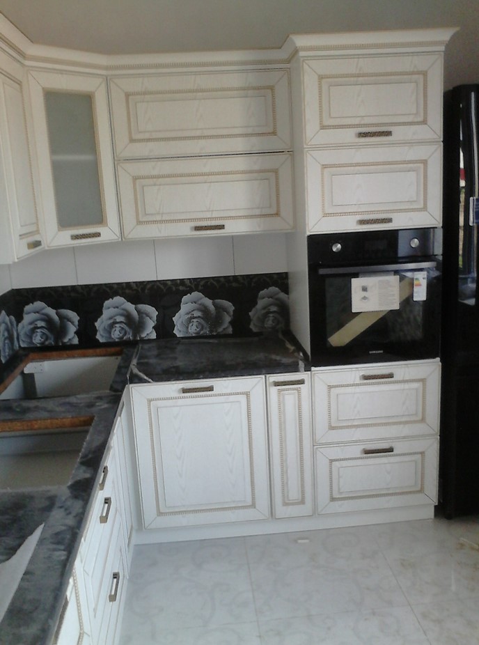 Фасады кухни выполнены с особым вниманием к деталям и декорированы в классическом стиле. Они придают гарнитуру изысканный вид и добавляют нотку роскоши в интерьер.