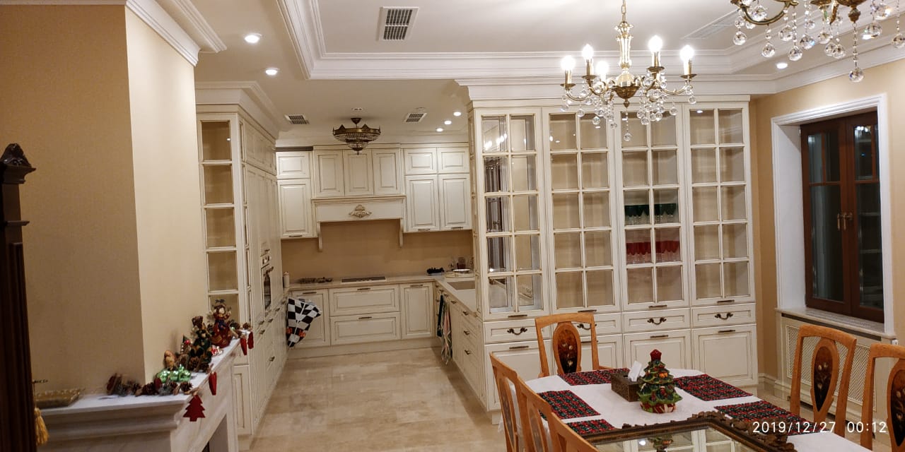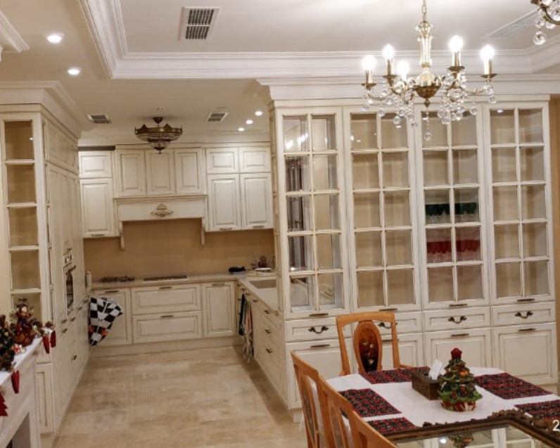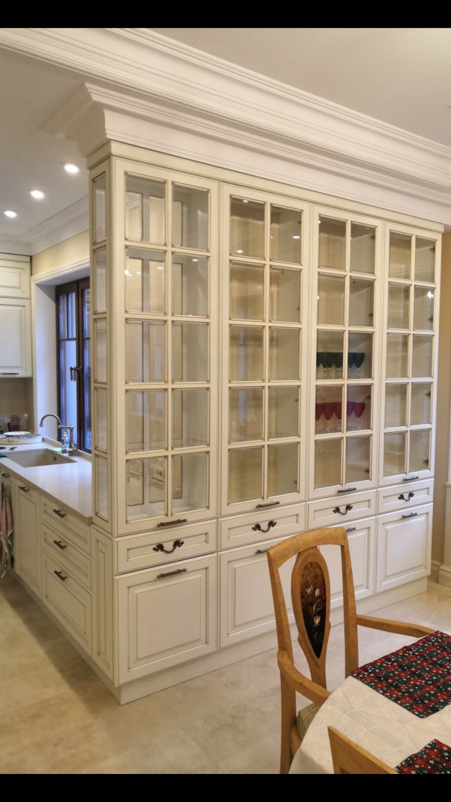 код 110542Фрезерованные фасады с эффектом патины. Витрины для кухонной утвари.
