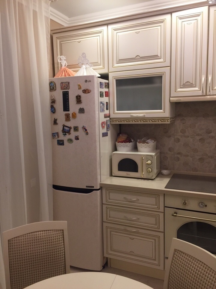 Длина кухни: 2.8х1.4 м + 2.2 м. Материал фасада: ЛДСП.