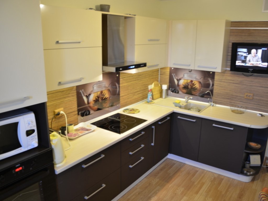 Длина кухни: 3.4х1.4 м. Материал фасада: пластик.