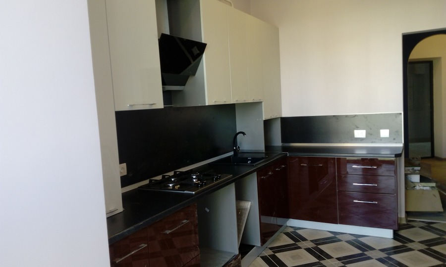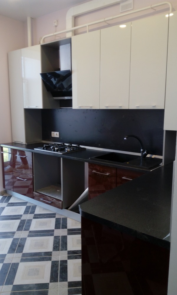 Фасады матовые из крашеного МДФ. Фурнитура: Blum (Австрия).