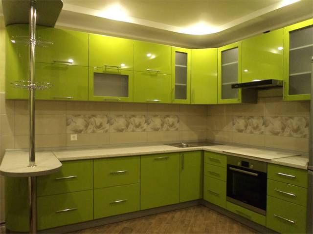 Современные кухни из МДФ и ЛДСП, пластика, металла, закаленного стекла.