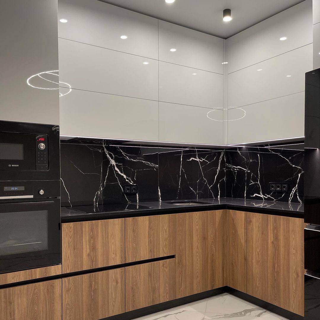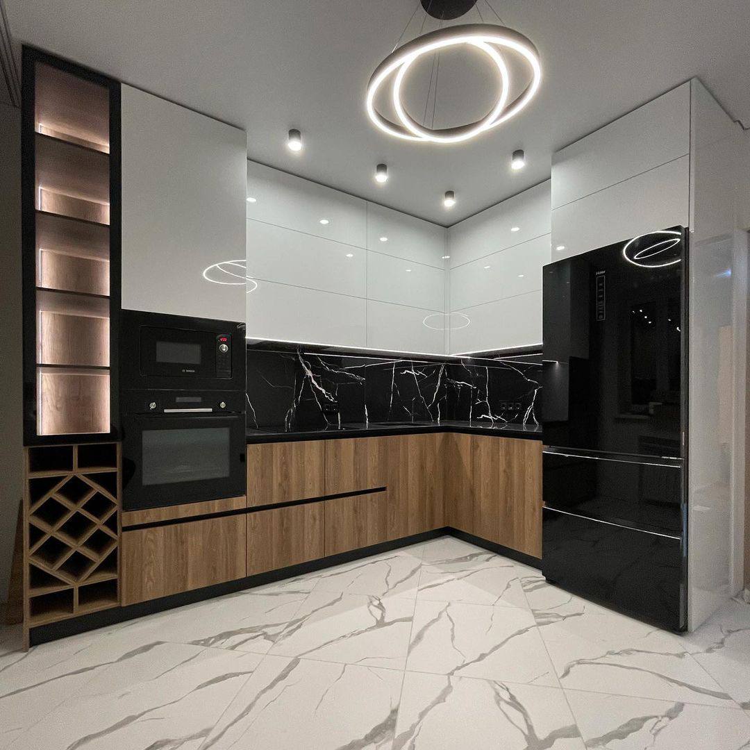 Кухня угловая черно-белый глянец