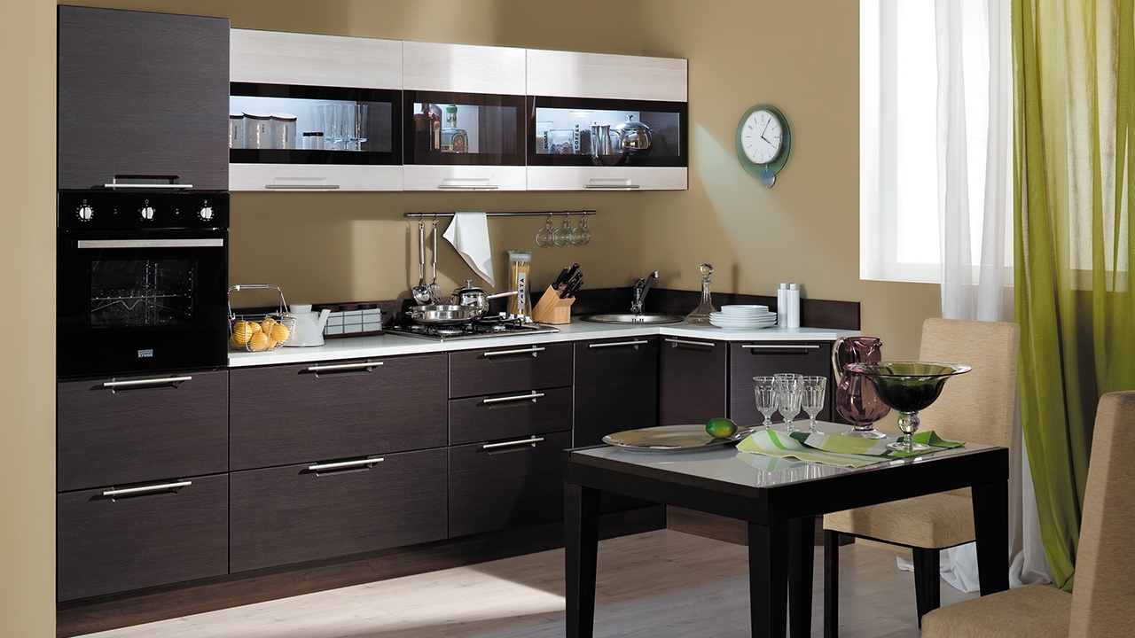 Мебель для кухни в рассрочку по халве может быть самой разнообразной - как в светлых тонах, так и в насыщенных темных.