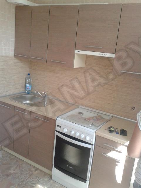 код 88545Фасад каштанового цвета, столешница бежевая. Есть ниша для встроенной вытяжки.
