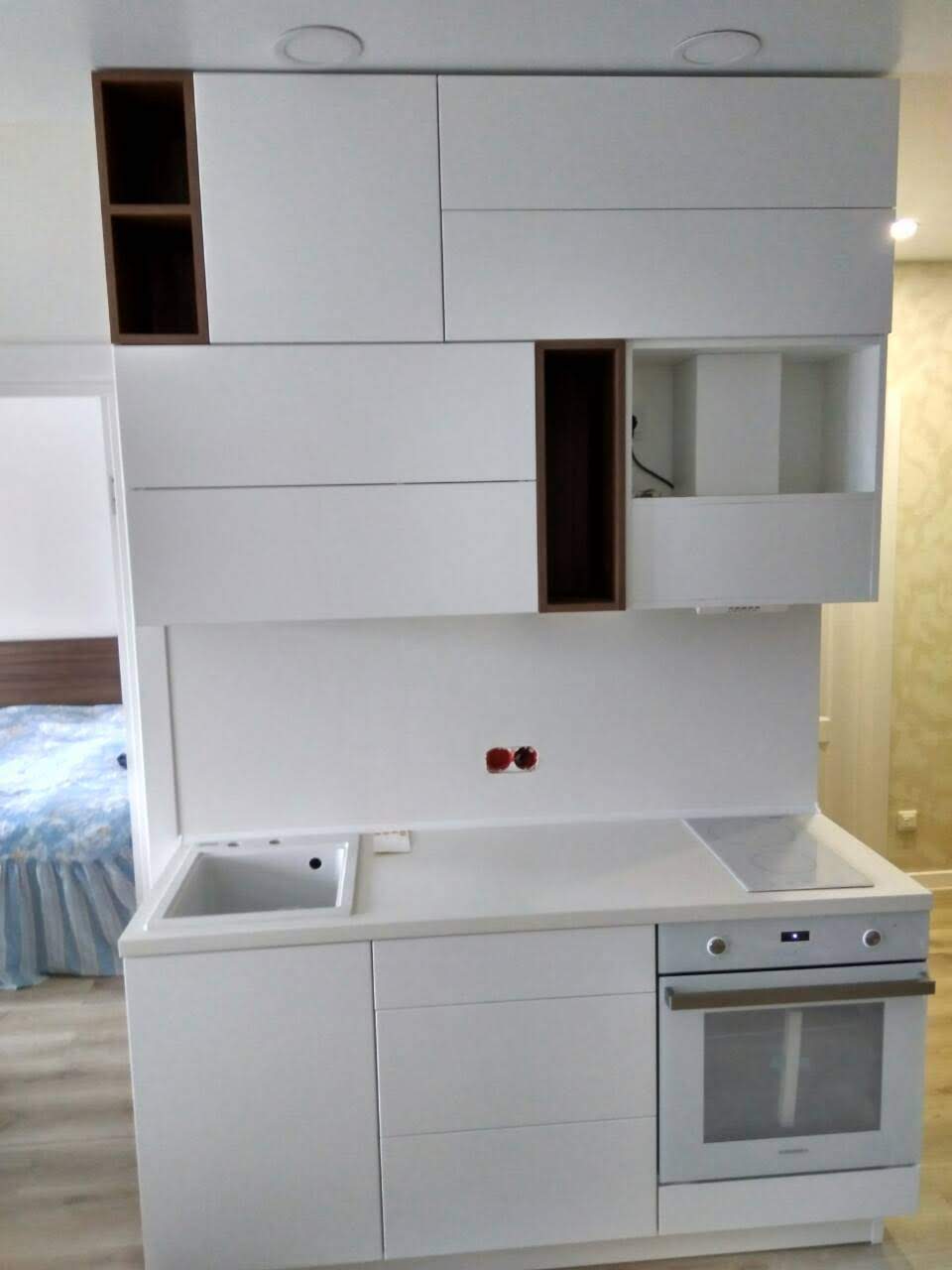 Недорогая фабричная кухня из ламинированной ДСП.