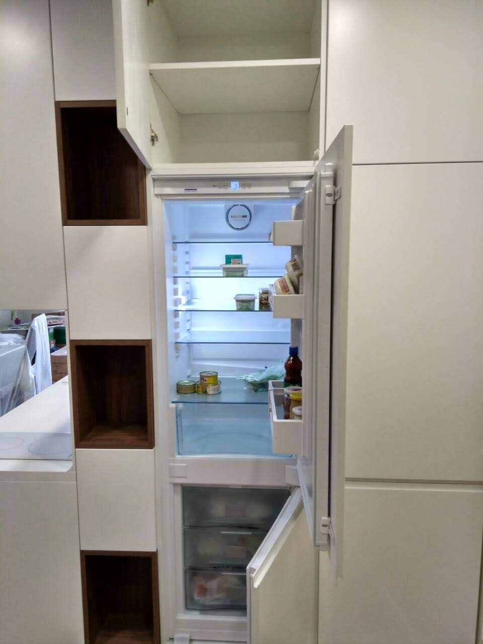Остекленный шкаф. Контрастная черно-белая отделка.