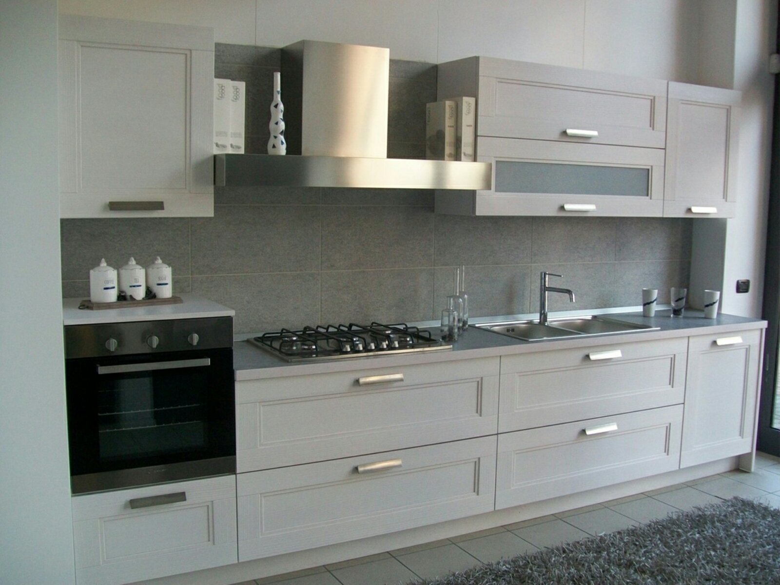 Сочетание белого и серого цветов. Навесные шкафчики.