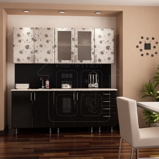 код 96015Размер кухни:2300 мм. Цвет: белые и черные цветы.