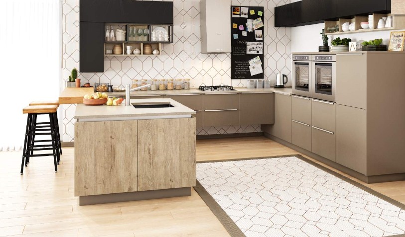 Кухня с пластиковыми фасадами с комбинированным цветом