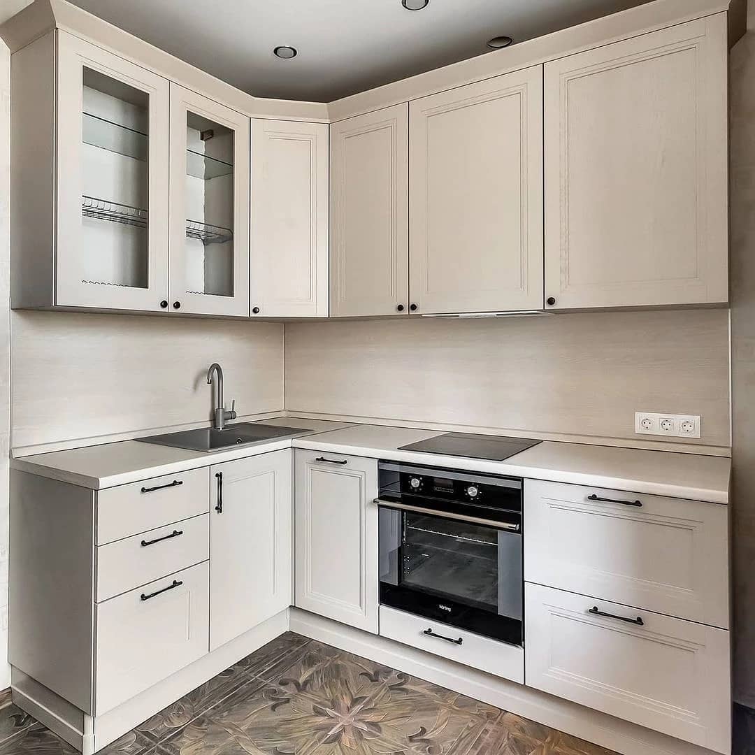 Компактная угловая кухня светлая