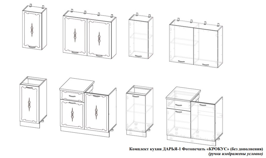 Комплект ДАРЬЯ-1 длиной 1,6м (Верх: 1600 х 706 х 285 мм Низ: 1600 х 806 х 445 мм) состоит из модулей: