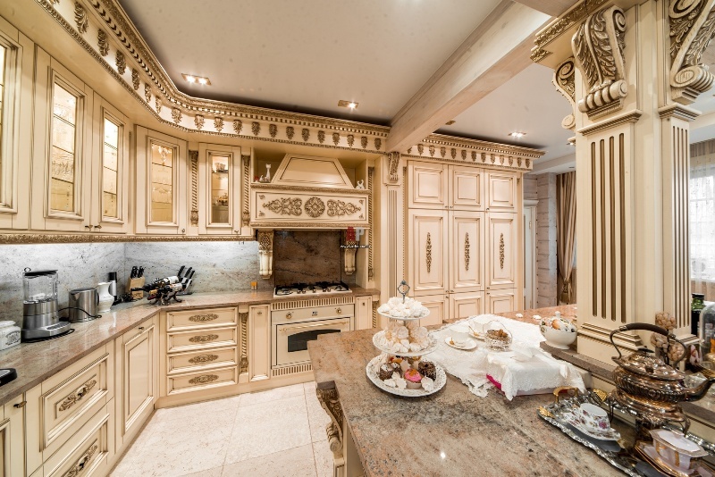 Интегрированные ручки, надежная фурнитура, ниши для встраиваемой техники, матовые фасады.