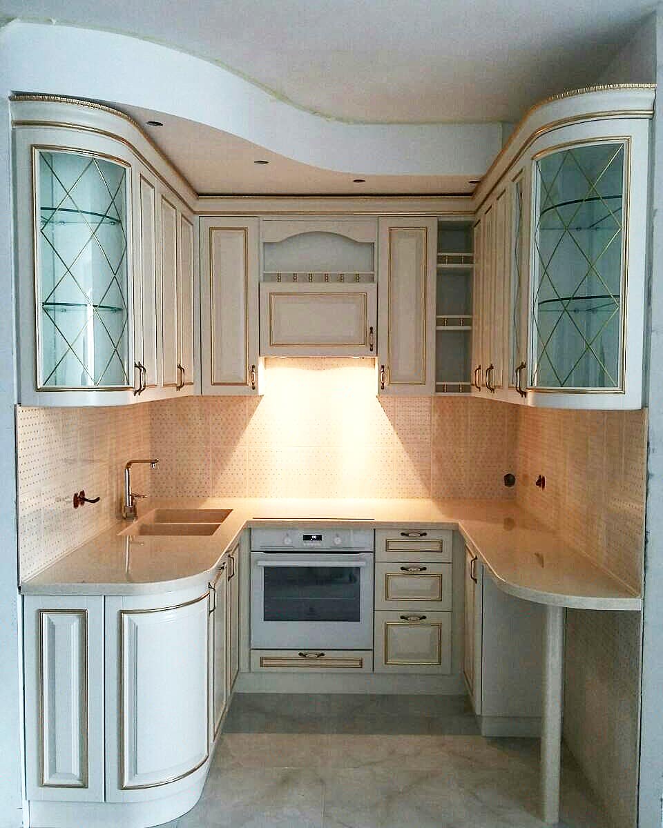 Эргономичная и благородная кухня с островом в неоклассическом стиле. Фасады из пленочного МДФ.