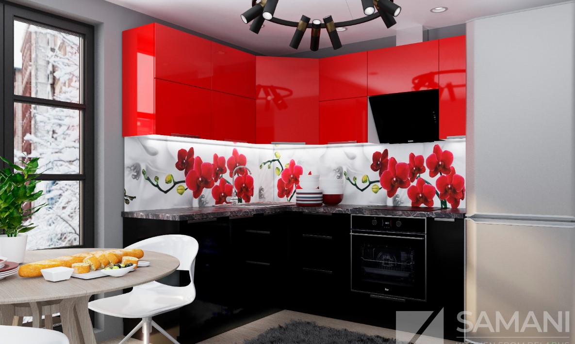 Современные кухни из МДФ и ЛДСП, пластика, металла, закаленного стекла.