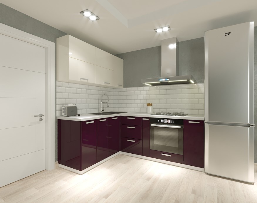Современная кухня из МДФ. Удлиненные верхние шкафы.
