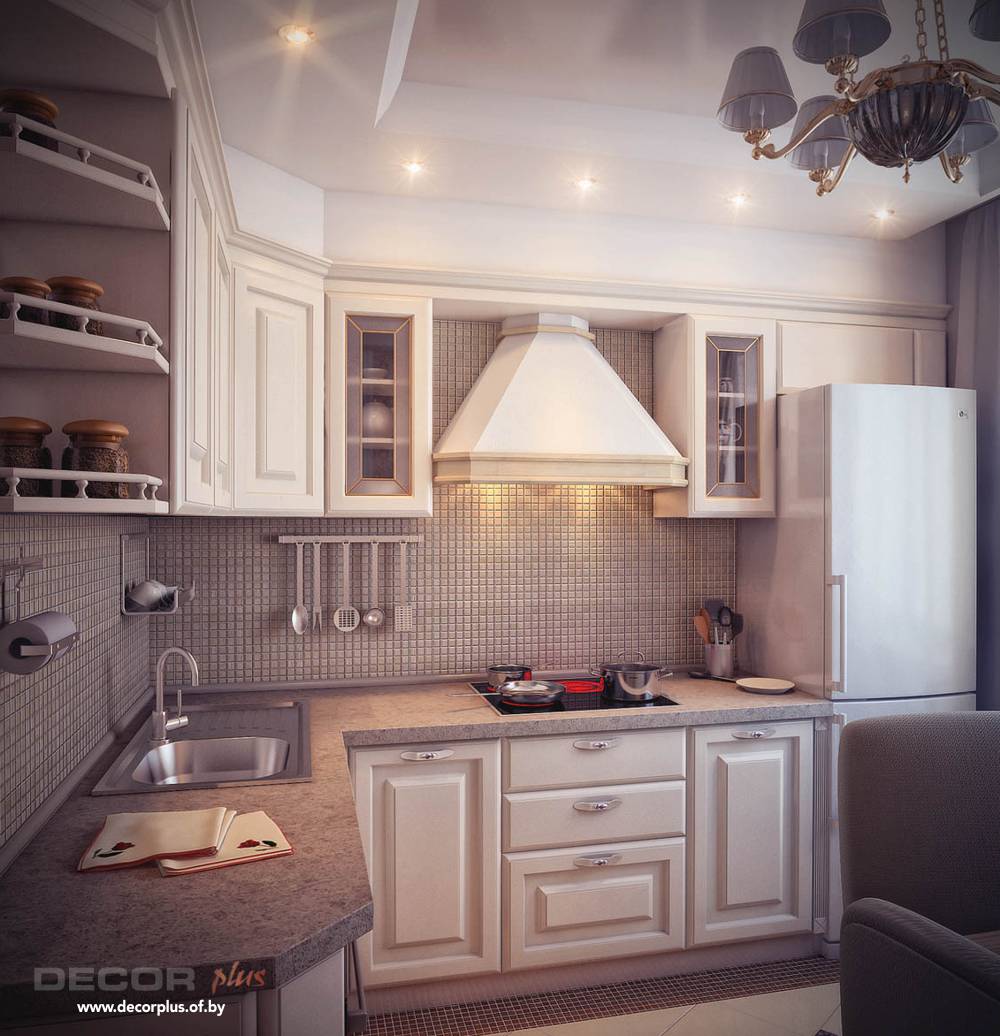 Угловая кухня в светлом лаконичном дизайне