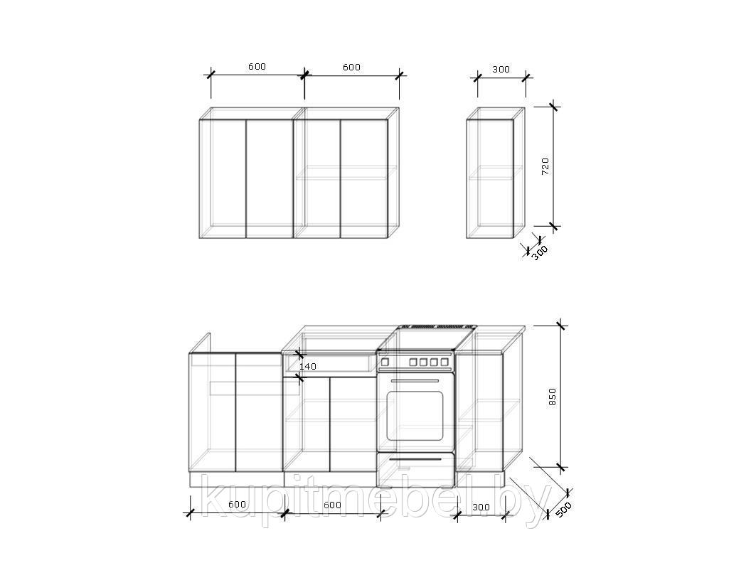 - Высота верхних шкафов - 72 см.