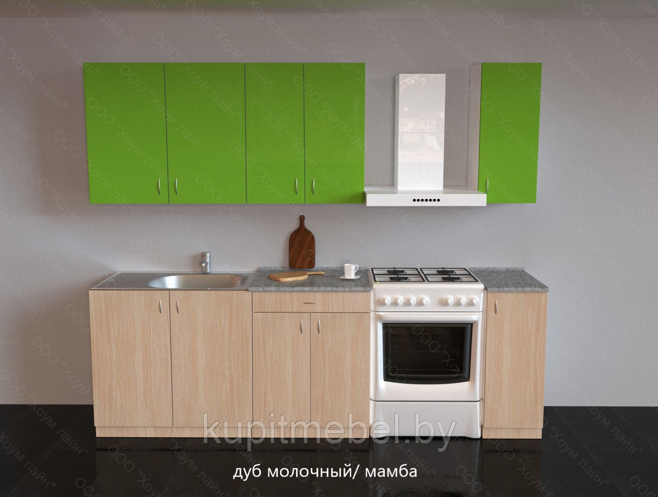 Прямая кухня «Оля» МДФ 1.6/3 м, зеленое яблоко/черный жемчуг