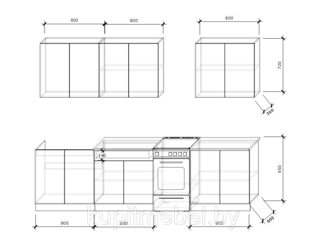 - Высота нижних шкафов - 85 см.