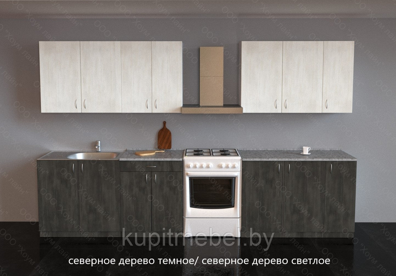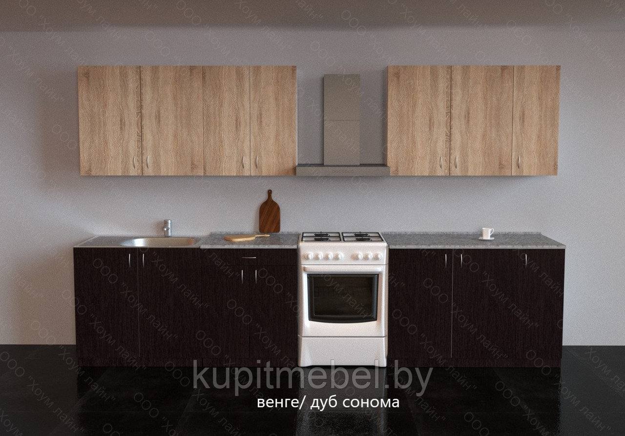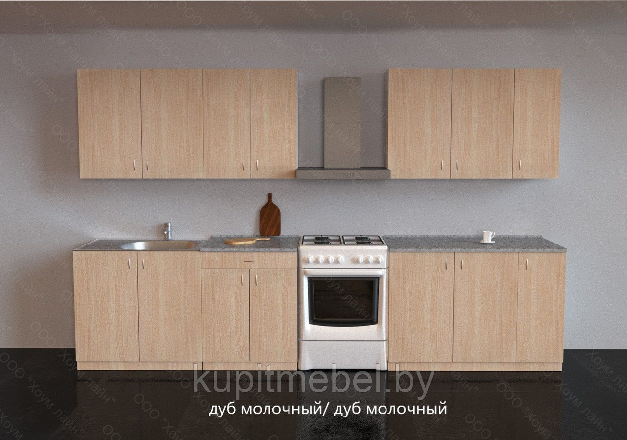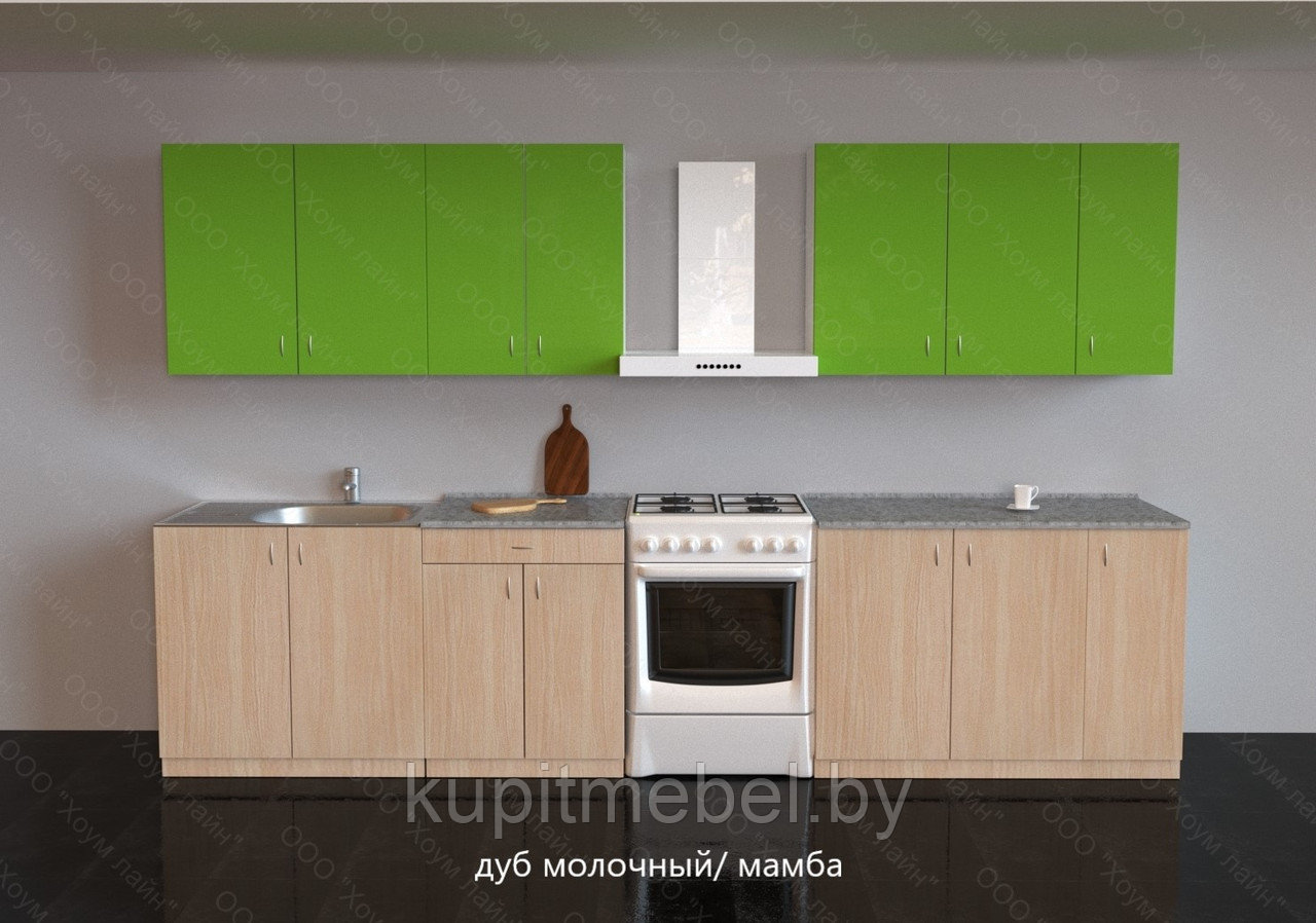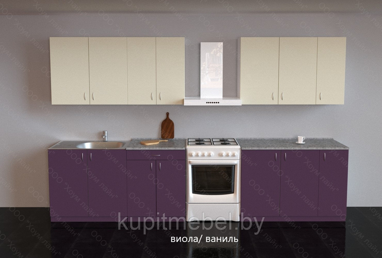 код 116375Готовая кухня длиной 2,5 м. Фасады из ламинированной ДСП в нескольких расцветках.