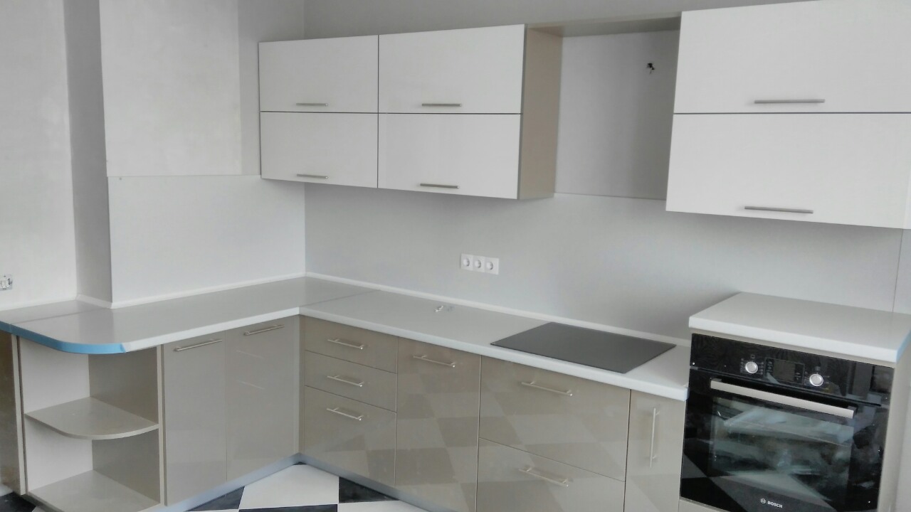 Угловая кухня под установку встраиваемого духового шкафа.