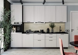 Прямая кухня из МДФ, не требует особого ухода и специальных моющих средств. Может служить до 20 лет.