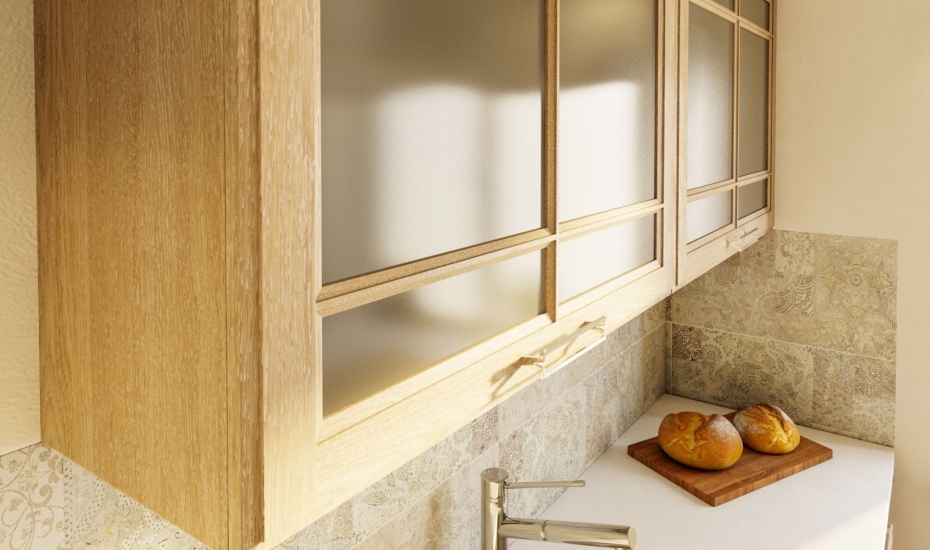 Вместительные фасады. Тарец со стеклянным шкафчиком.