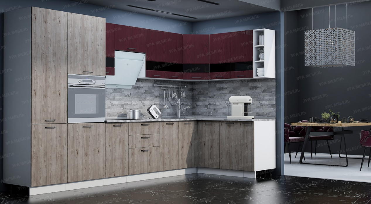 Кухня «Астра 3,5*1,6» угловая Красное дерево патина/ дуб галиано