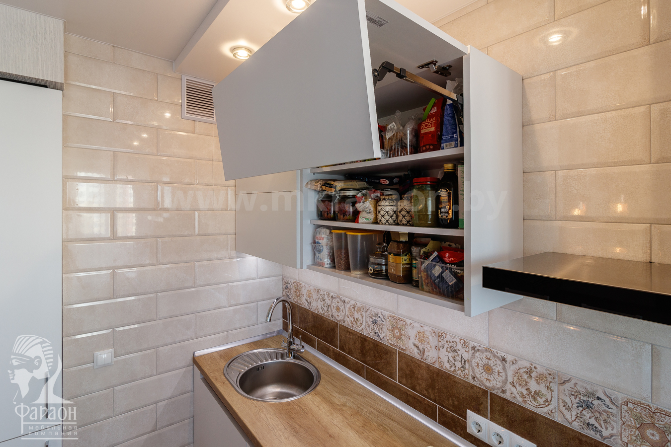 Материал фасада и корпуса: ЛДСП 16 мм. Ширина кухни 160 см.