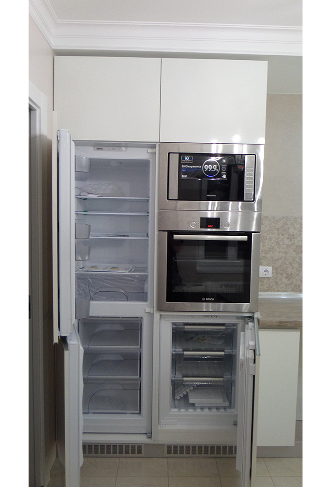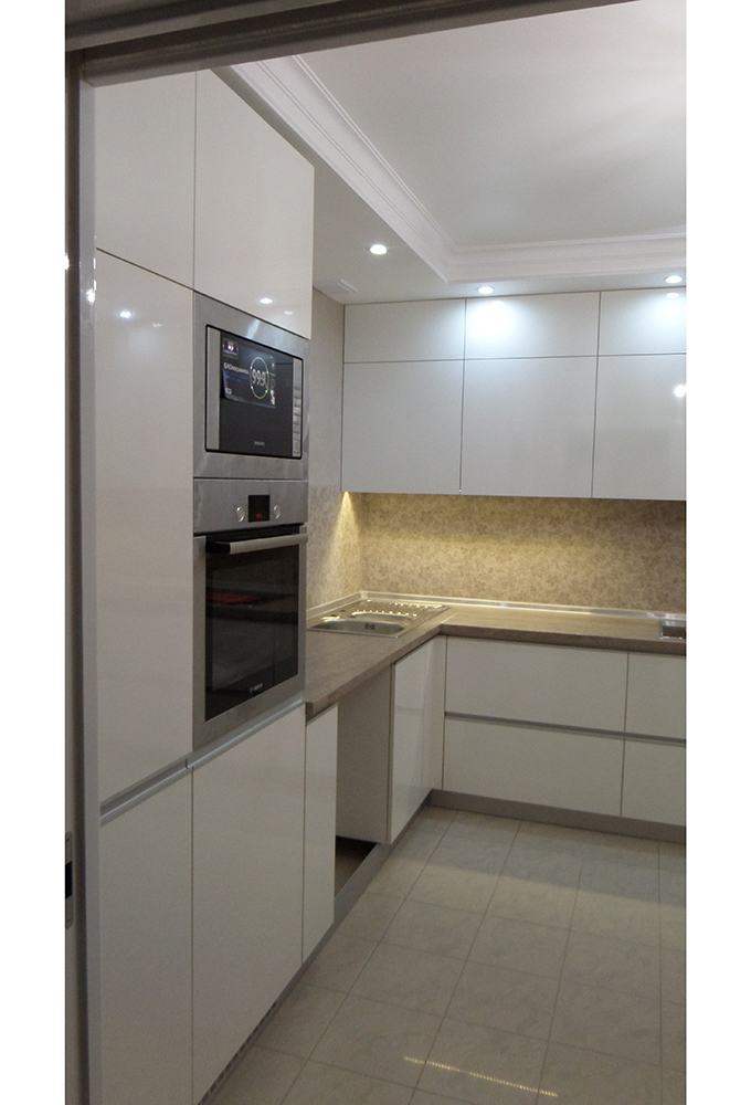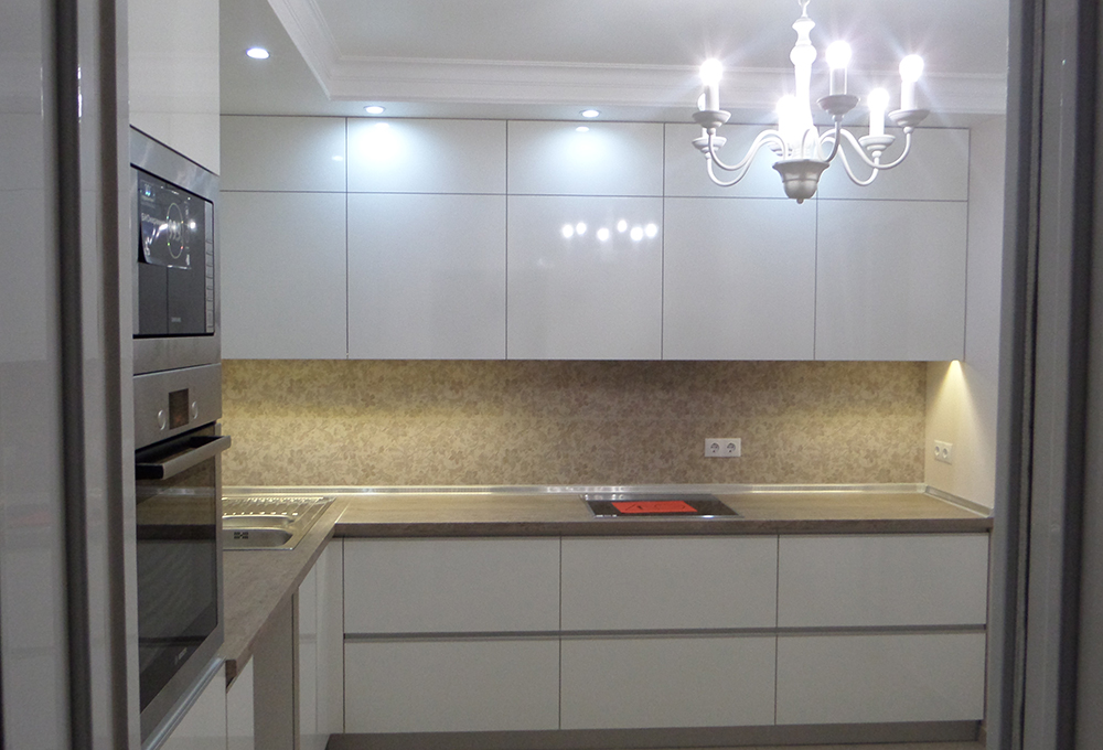 код 77659Цвет: белый глянец. Подсветка столешницы. Встроенный духовой шкаф.