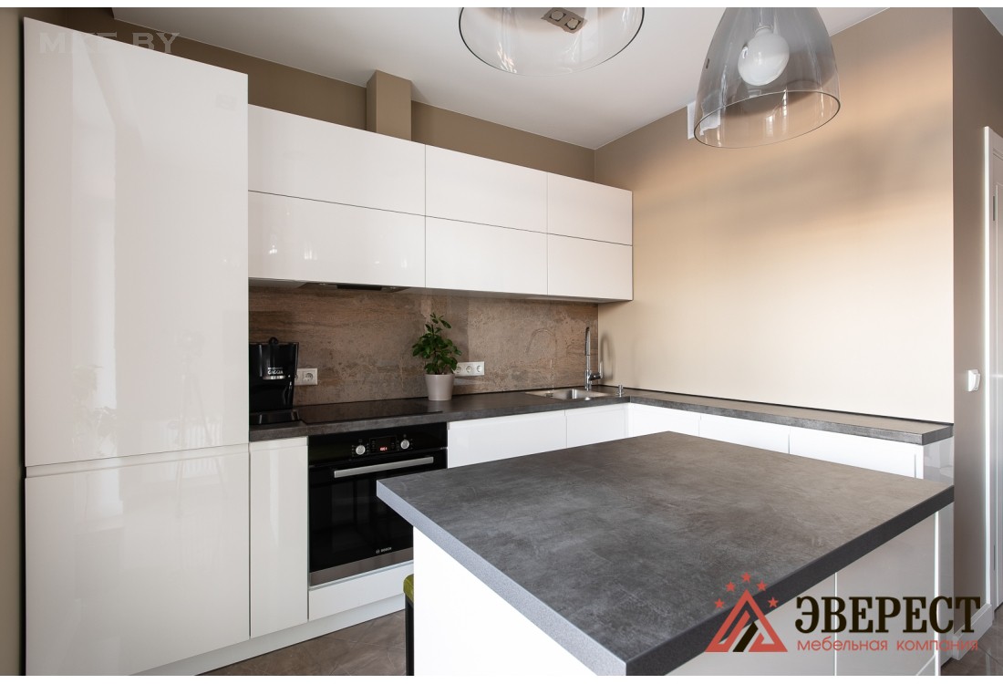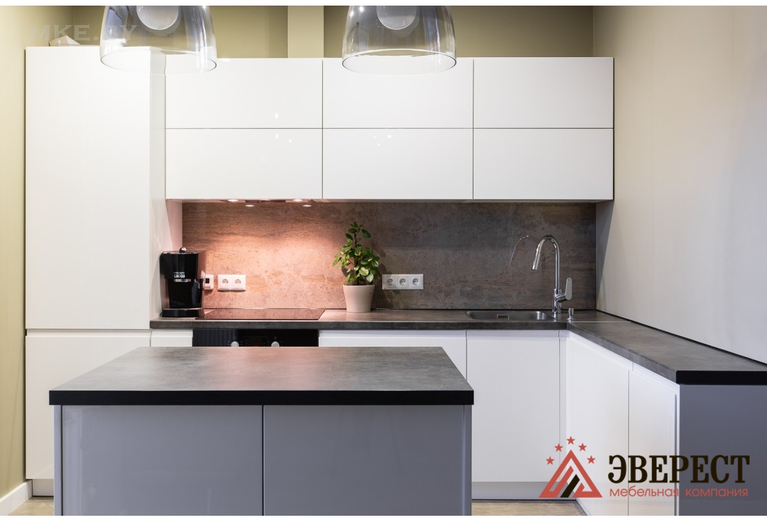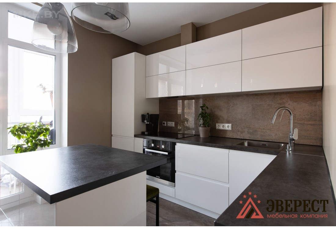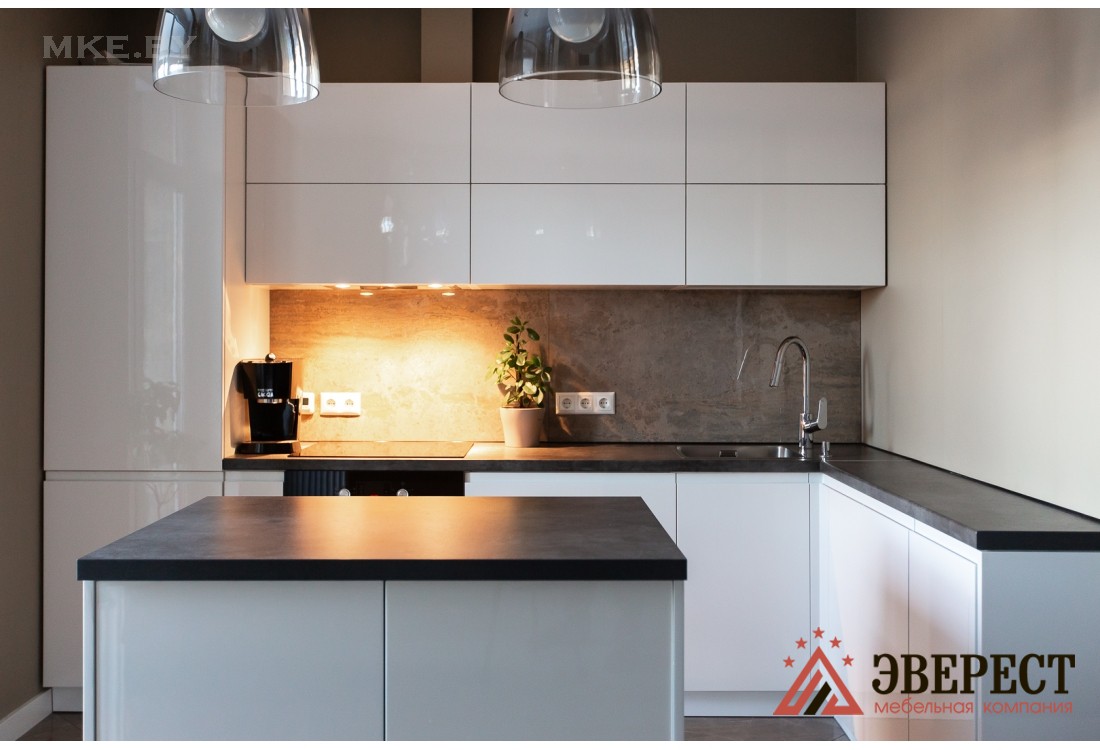 код 97881Кухня без ручек, фасады выполнены из крашенного МДФ.