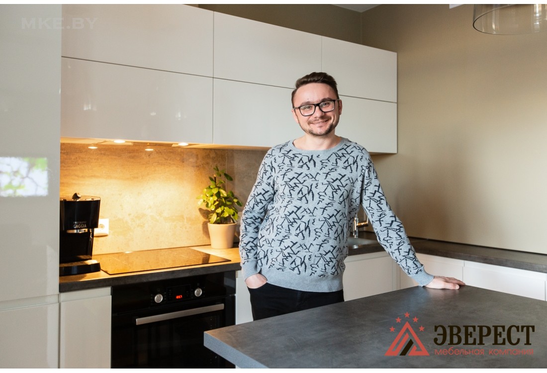 Интегрированная ручка используется в нижних фасадах кухни, что придает кухне утонченность и легкость.