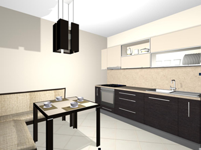 Бежево-коричневая кухня имеет стандартную линейную конструкцию. Просторные шкафы и вместительные выдвижные ящики комплектуются стильной и надежной фурнитурой, выполненной из металла. Фасады декорированы стеклянными вставками. Любая комплектация. Широкий выбор материалов.