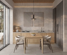 Контрастные оттенки верхней и нижней линии шкафчиков.