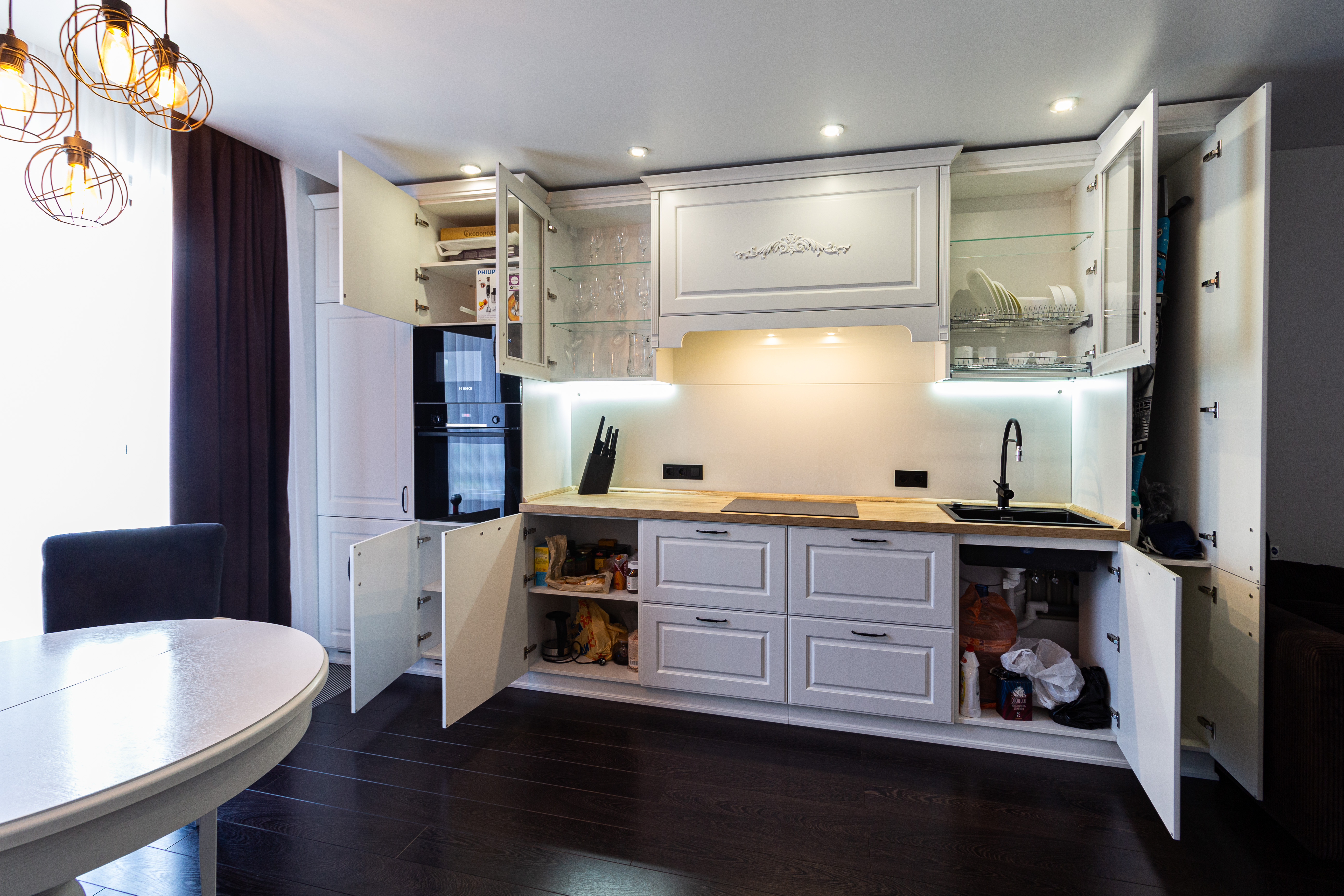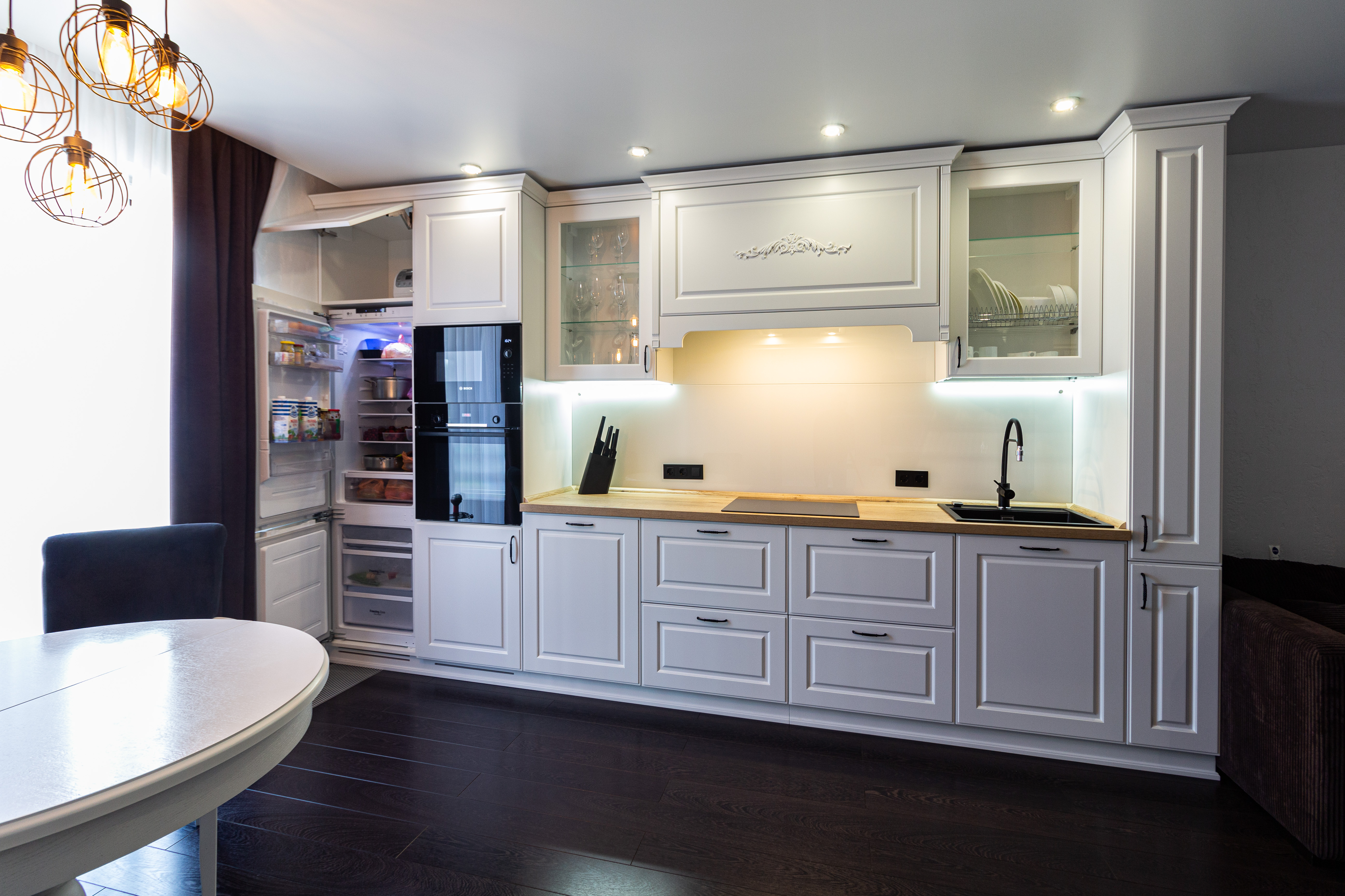 Филенчатые фасады, удобная фурнитура, гармоничный дизайн.
