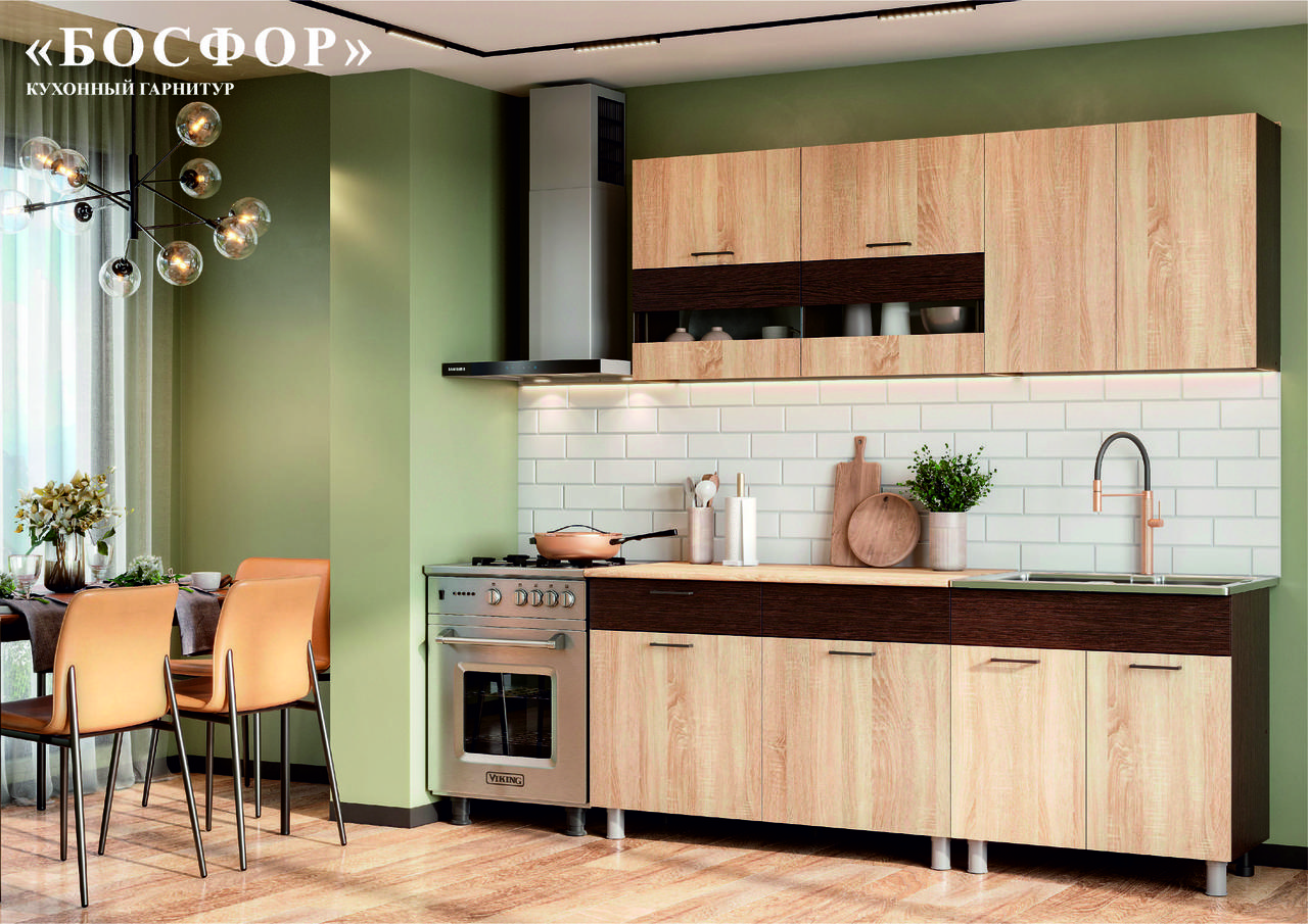Кухня «Босфор (2.0м)» Дуб Венге/Дуб Сонома