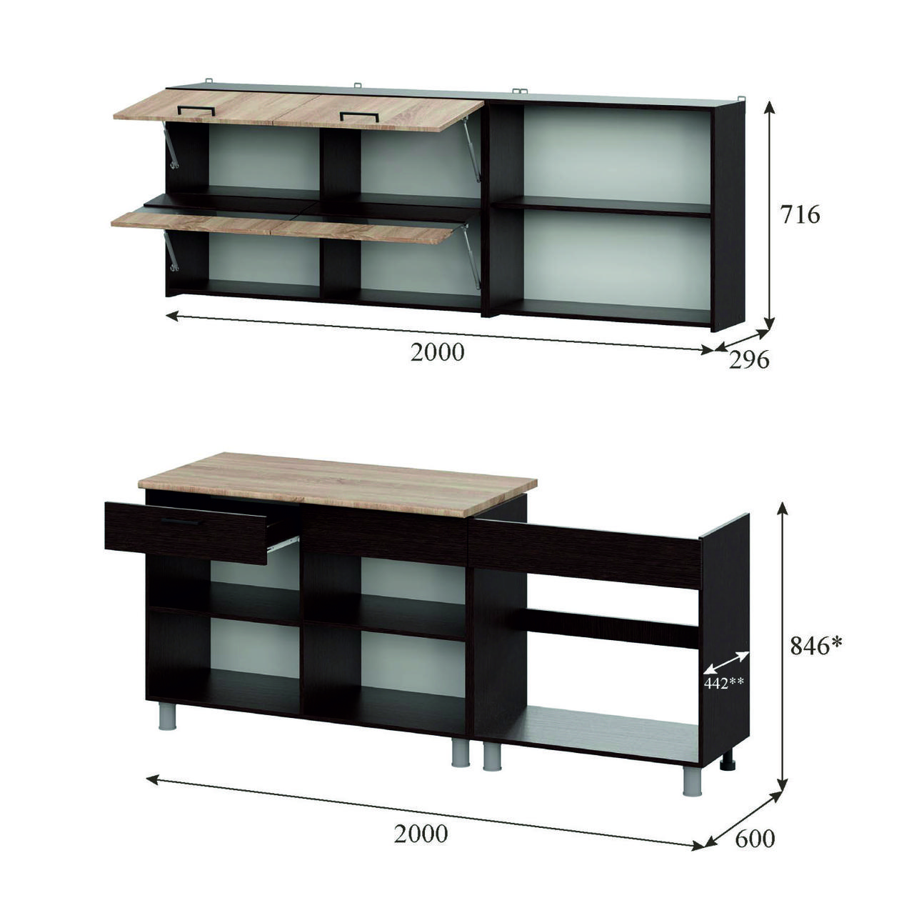 Цвет фасадов: дуб/венге