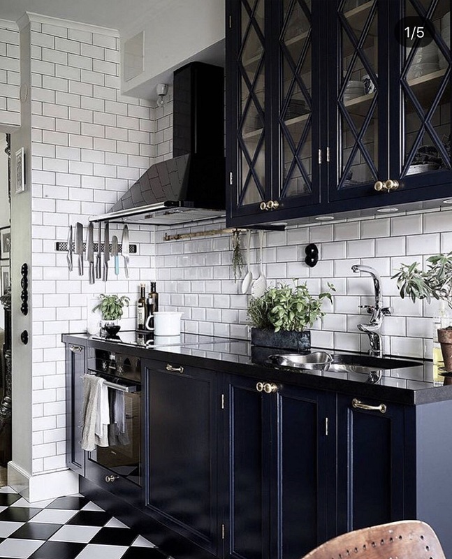 Представленный кухонный гарнитур выполнен в классическом стиле. Глубокий темно-синий стальной оттенок отдаленно напоминает черный цвет и визуально увеличивает конструкцию и придает кухне величественный внешний вид. А элементы декора из золотистых ручек и аккуратных стеклянных вставок витрин наделяют мебель элегантностью и изысканностью.