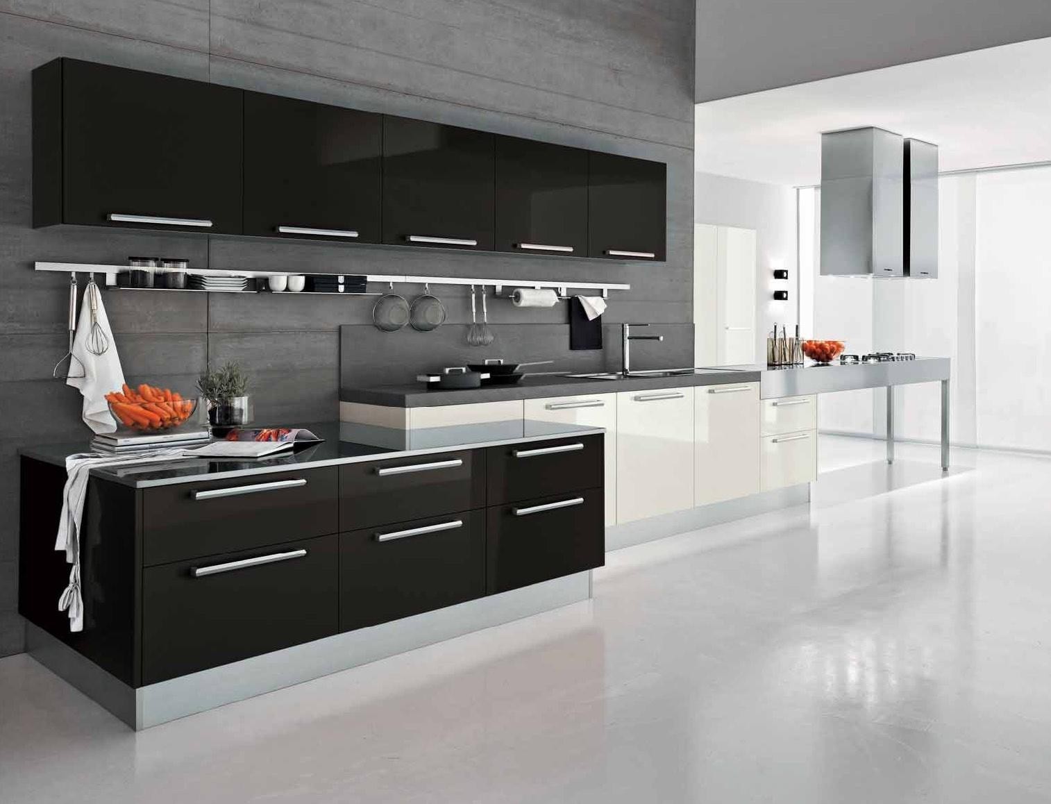 Удобные металлические ручки в цвете «сатин». Ширина кухни 200 см.