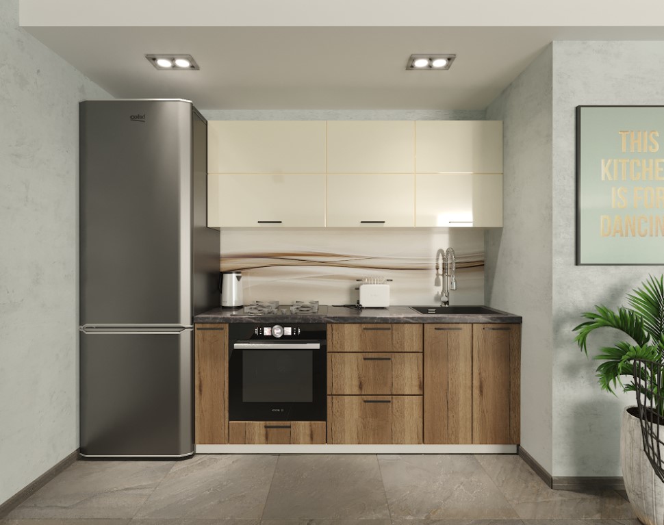 Прямая кухня «Яна» ДСП 2.4 м, артвуд светлый/артвуд темный